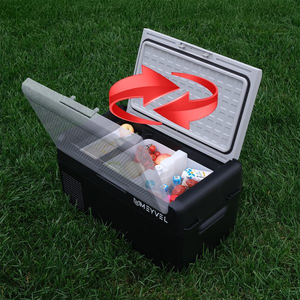 Meyvel AF-L20 ICE спроектирован так, чтобы быть максимально удобным в повседневной эксплуатации. Устройство оснащено надёжными ручками для переноски и крышкой с защёлкой, которая не откроется при движении или случайном толчке. Благодаря компактным размерам автохолодильник без труда помещается даже в багажник небольшого автомобиля, а перенавешиваемая дверь делает его особенно удобным при ограниченном пространстве — вы можете выбрать, с какой стороны он будет открываться.