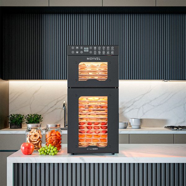 Meyvel MDH20-1S2 (Чёрный) (Black) — это современный дегидратор, который создан для тех, кто хочет заготавливать фрукты, овощи, мясо, травы и ягоды без потери их вкуса и пользы круглый год. Прочный корпус, продуманная конструкция и умная электроника превращают его в надёжного помощника на каждый сезон.