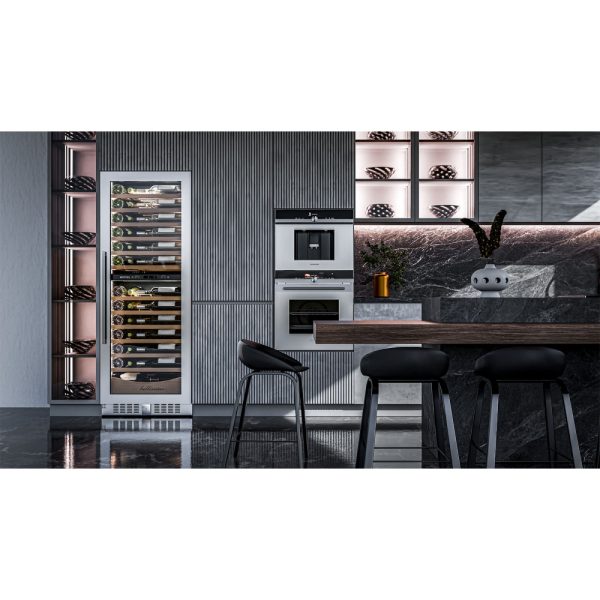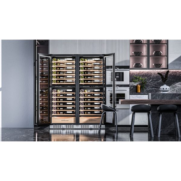 Благодаря возможности перенавешивания двери, Вы можете установить два винных шкафа рядом и организовать систему дверь к двери.